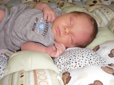 My baby is.five.months.old. It's been five months since that fateful doctor's appointment that uncovered my blood pressure was a wee bit high and the doc suggested induction, given my heart condition. Five months since DH and I spent two nights waiting for my labor to progress, waiting for our sweet, wonderful baby Patrick to arrive. Five months since the nurse handed him to me and I thought, "Mine." Isn't that a weird thing to think? I think that was one of my first thoughts because for so long, I was just the aunt, just the envious friend who admired others' beautiful babies. I was overcome with gratitude and love for this blessing, and overcome with fear at the enormity of my new responsibility. As soon as I looked in his face and held him in my arms, I felt a sense of familiarity. After spending the last nine months praying for him, talking to him, laughing at his antics in my belly, and documenting his growth, his little face just made...sense. I just knew him. And how the last five months have flown. I know that five months isn't a big milestone, but it just seems like Patrick is doing so many new things that I continue to be amazed. Just a few things: he is sitting up better and better in the Bumbo, working on "eating" rice cereal, rolling from back to front and front to back, "scooting" off his playmat on a regular basis by kick, kick, kicking his feet. He loves playing "horsey" with his daddy, can sit comfortably on my hip, and is fascinated by his soccer ball. He thinks it's hilarious when daddy bounces the ball in his house, and he tries his best to "hold" it. I am loving every minute, and I hope that I'm keeping enough of a journal to remember all of these sweet moments farther down the road. I continue to pray that Patrick grows healthy, strong, happy, and that DH and I can give our all to raising him and any other children we may have.